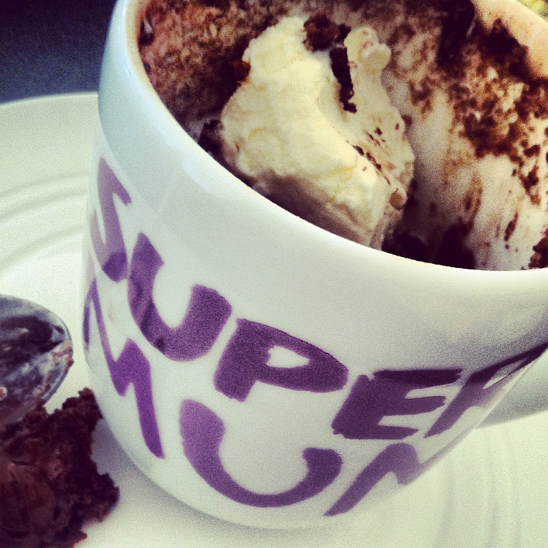 I had not previously heard about this cake in a mug phenomenon (I know, where have I been right?!), so I surfed the net in search of this "chocolate cake in a mug" and found a simply delicious sounding recipe that ticked all my boxes and all of a sudden my "urges" for chocolate were taking over my mind and I now HAD to have it. Of course it was breakfast time and we don't do this all the time of course but I relented and gave in. Yes we had chocolate cake in a mug for breakfast. Yes we also may have had a scoop of ice-cream for breakfast and yes it was DELICIOUS!!!!