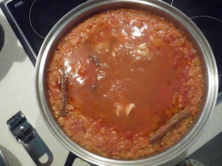 Heat olive oil in large saucepan. Add onion and cook over low heat until soft. Add chicken and cook for further 5 minutes before adding cinnamon sticks, cardamom, paprika and chilli.